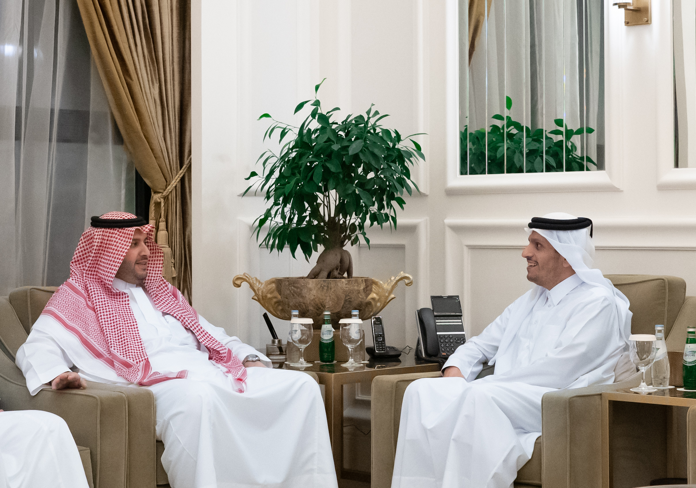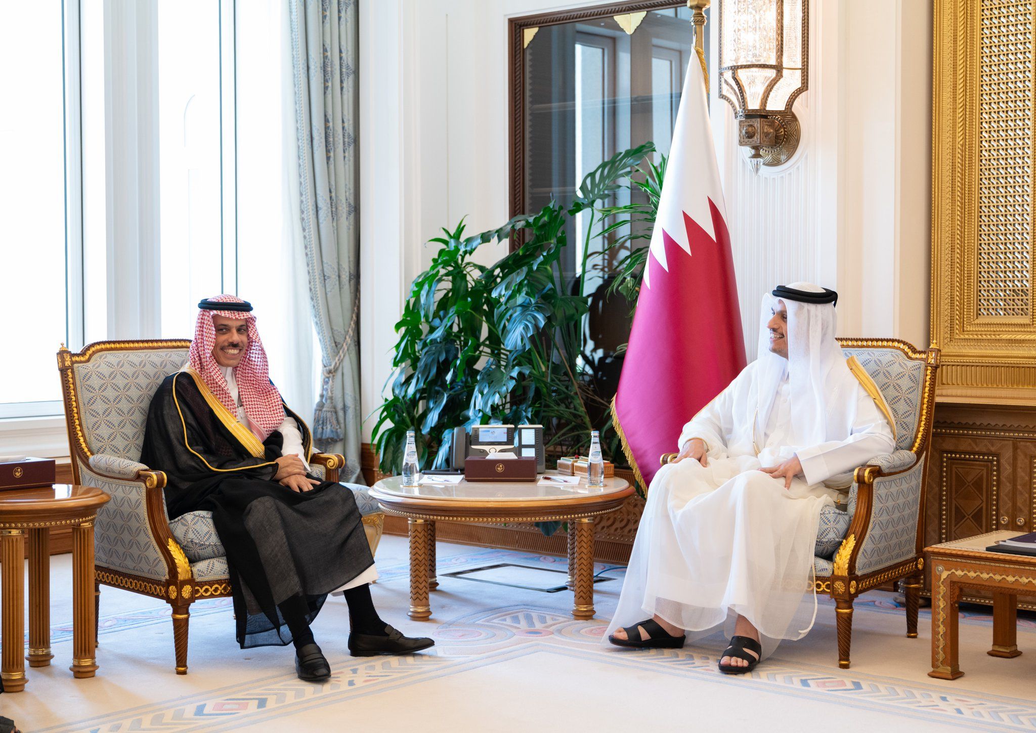 HE Prime Minister and Minister of Foreign Affairs Sheikh Mohammed bin Abdulrahman bin Jassim Al-Thani, who is the Qatari head of the political committee and executive committee of the Qatari-Saudi Coordination Council, and HH Minister of Foreign Affairs of the Kingdom of Saudi Arabia Prince Faisal bin Farhan bin Abdullah Al-Saud, who the Saudi head of the political committee and executive committee of the council, chaired the meeting of the political committee emerging from the Qatari-Saudi Coordination Council.